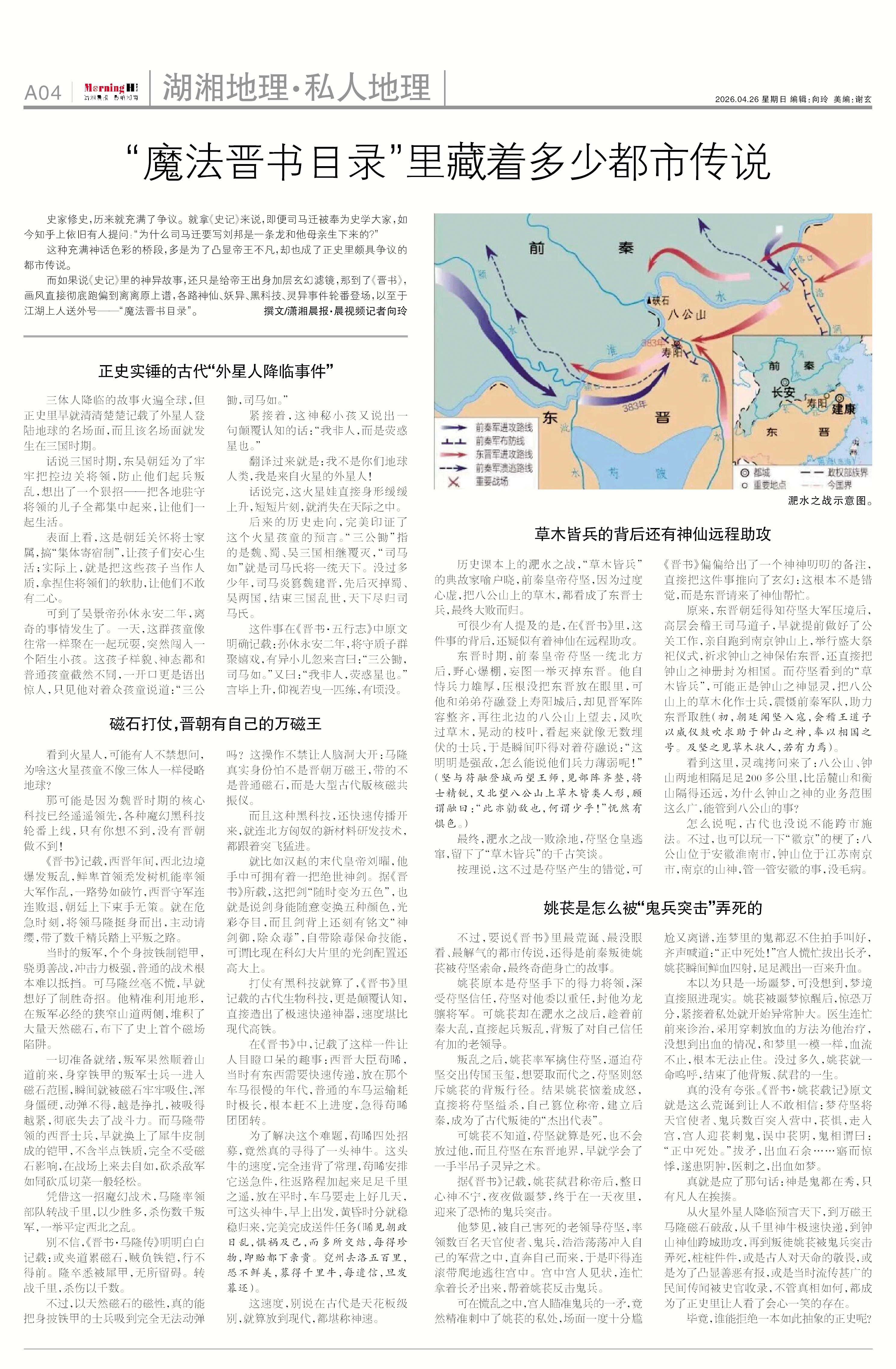 从火星外星人降临预言天下,到万磁王马隆磁石破敌,从千里神牛极速快递,到钟山神仙跨城助攻,再到叛徒姚苌被鬼兵突击弄死,桩桩件件,或是古人对天命的敬畏,或是为了凸显善恶有报,或是当时流传甚广的民间传闻被史官收录,不管真相如何,都成为了正史里让人看了会心一笑的存在。